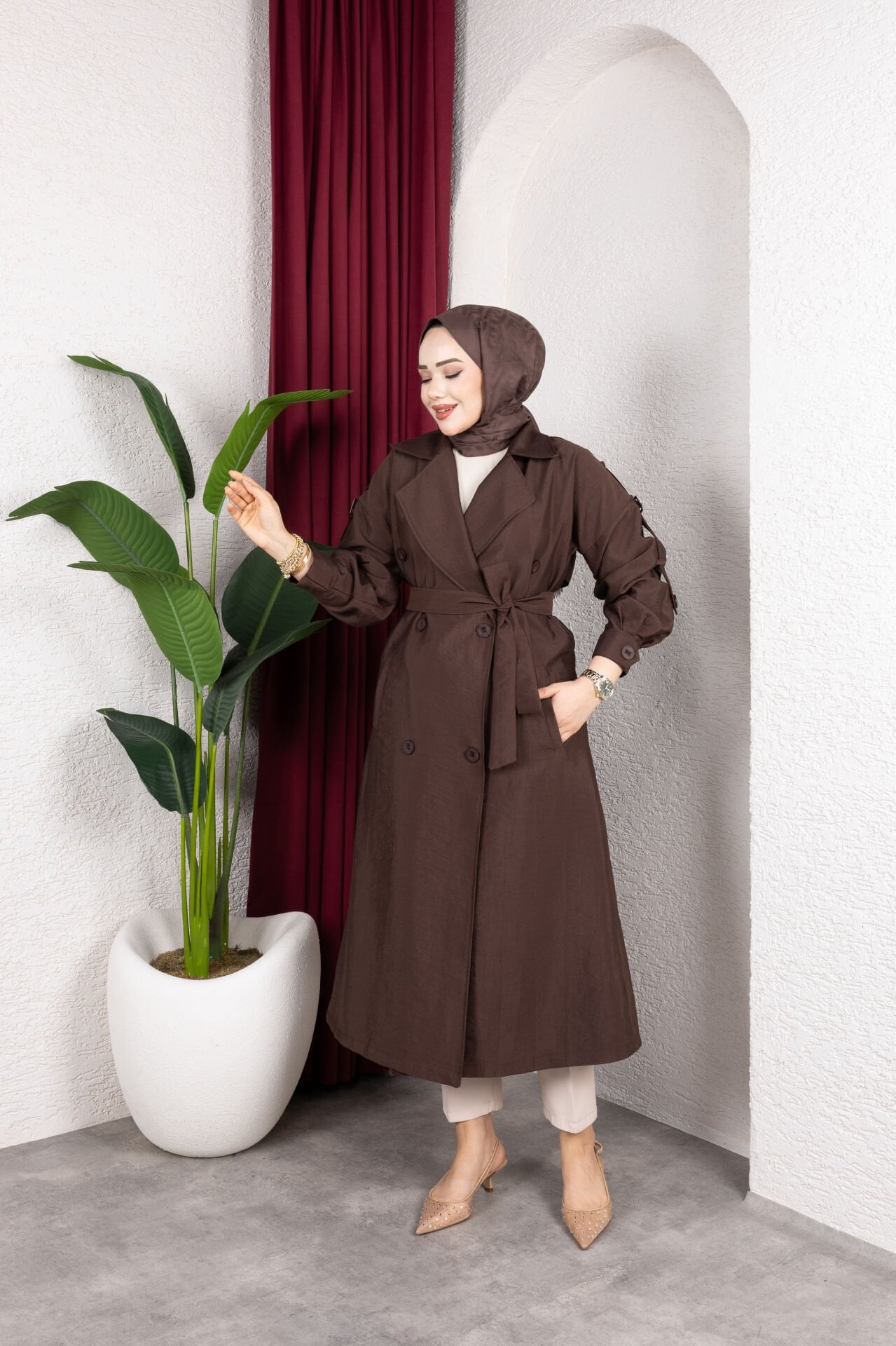 Klasik ve Şık: Kuşak ve Kol Detaylı Uzun Trençkot 1015