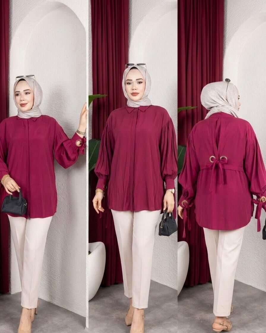 Modal Cupra Sırt ve Kol Detaylı Şık Tunik Gömlek 1013